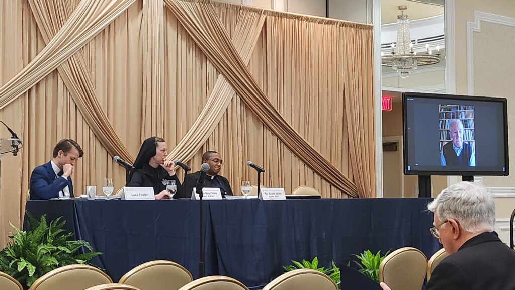 Presenters: Rémi Brague (Sorbonne, Paris; Ludwig Maximilian University, Munich); Mother Mary Christa Nutt, RSM (Religious Sisters of Mercy of Alma); and Rev. Maurice Agbaw Ebai Ashley (Boston College). Rémi Brague joined in virtually.